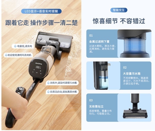 在智能化方面,澳柯玛洗地机具备屏幕显示、语音播报等功能,充分展示了以洗地机为代表的家清行业,正在进入人性化操作升级时代;其自清洁功能省去用户重复清洗烦恼,一机解决家庭地面脏污难题。