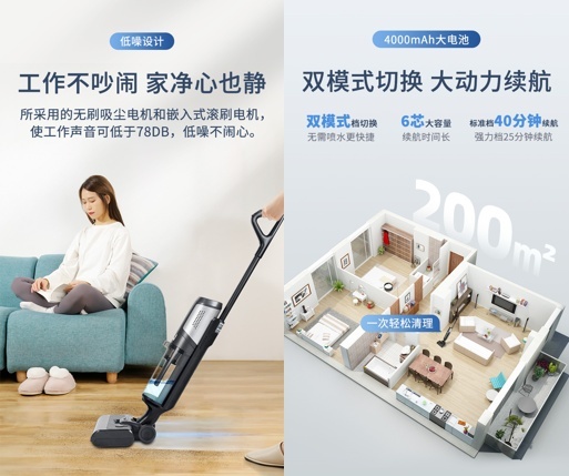 相比起吸尘器、扫地机器人、蒸汽拖把等其他同类目家清产品而言,洗地机更加符合现代用户对于家用智能清洁产品的使用需求,帮助人们实现了“扫拖自由”,在“懒人经济”大行其道的今天,它的热销在情理之中。