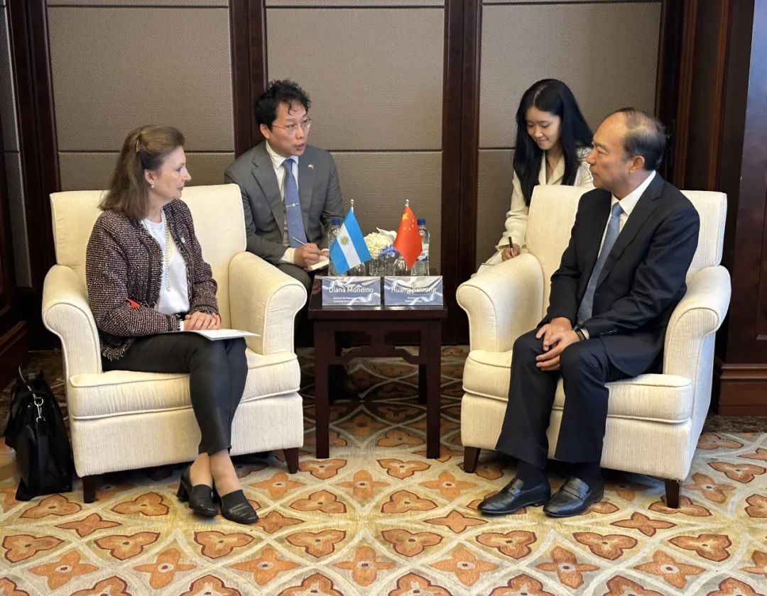 2024年4月28日,来华访问的阿根廷共和国外交、国际贸易和宗教事务部部长迪亚娜·蒙迪诺(Diana Mondino)在上海会见公司董事长黄建荣。