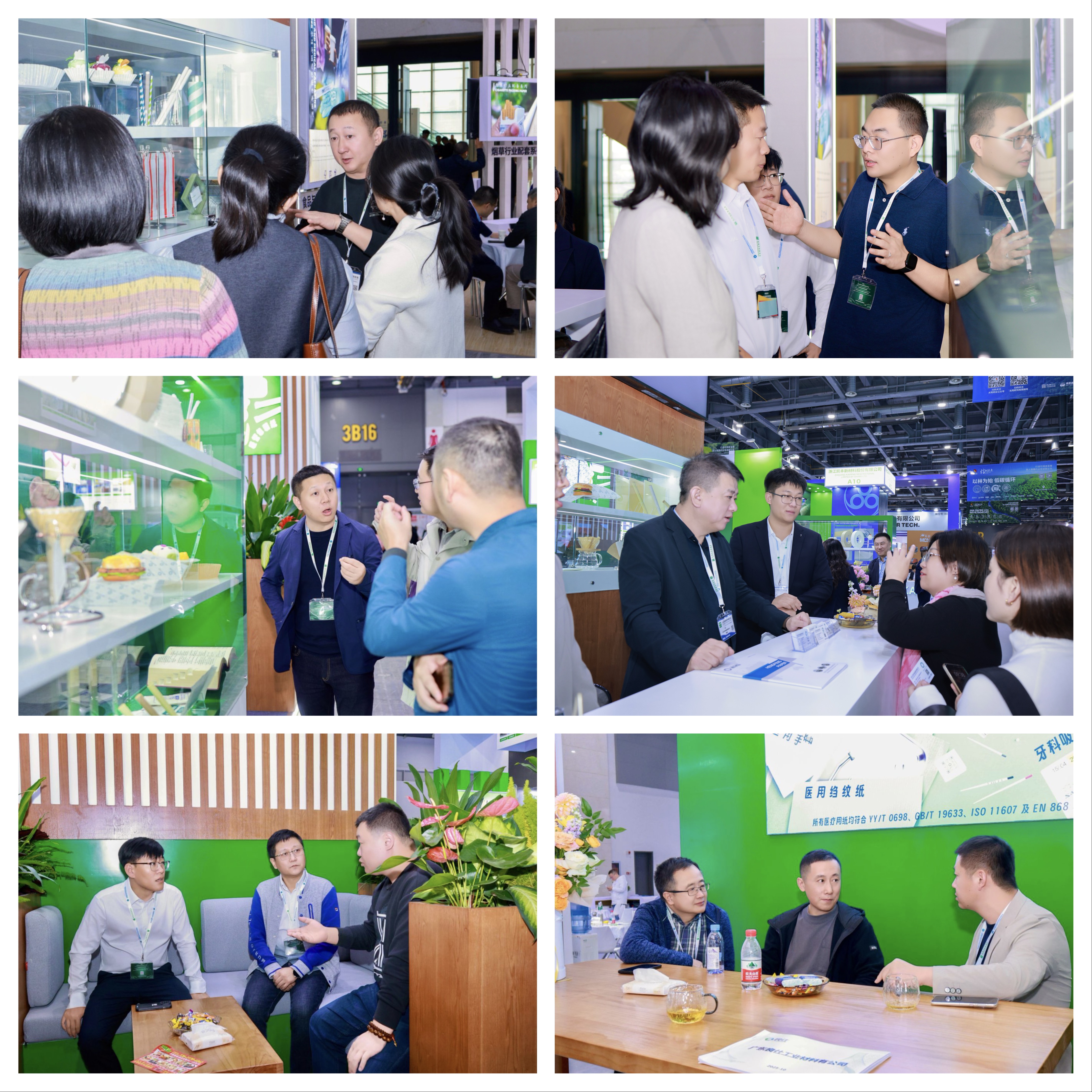紧扣本次展会“绿色、创新、融合”核心主题,恒丰纸业集中亮相多年研发积淀的系列创新成果,涵盖咖啡滤纸、热升华转印纸、无氟防油食品包装纸、医用手套包装纸、医用吸潮纸尖原纸、高端药品说明书薄型印刷纸及艾灸纸等多元产品。其卓越的产品品质与专业技术方案,成功吸引大批参展客户驻足咨询,深入了解产品性能优势、核心创新技术及多元应用场景。