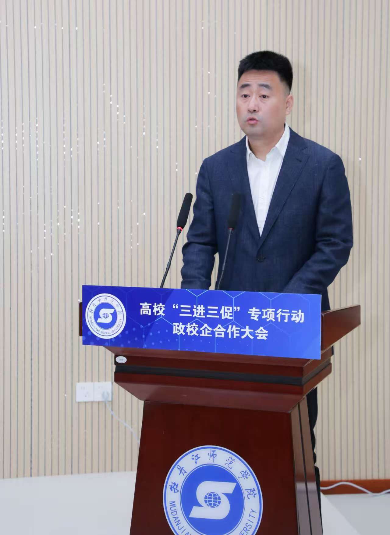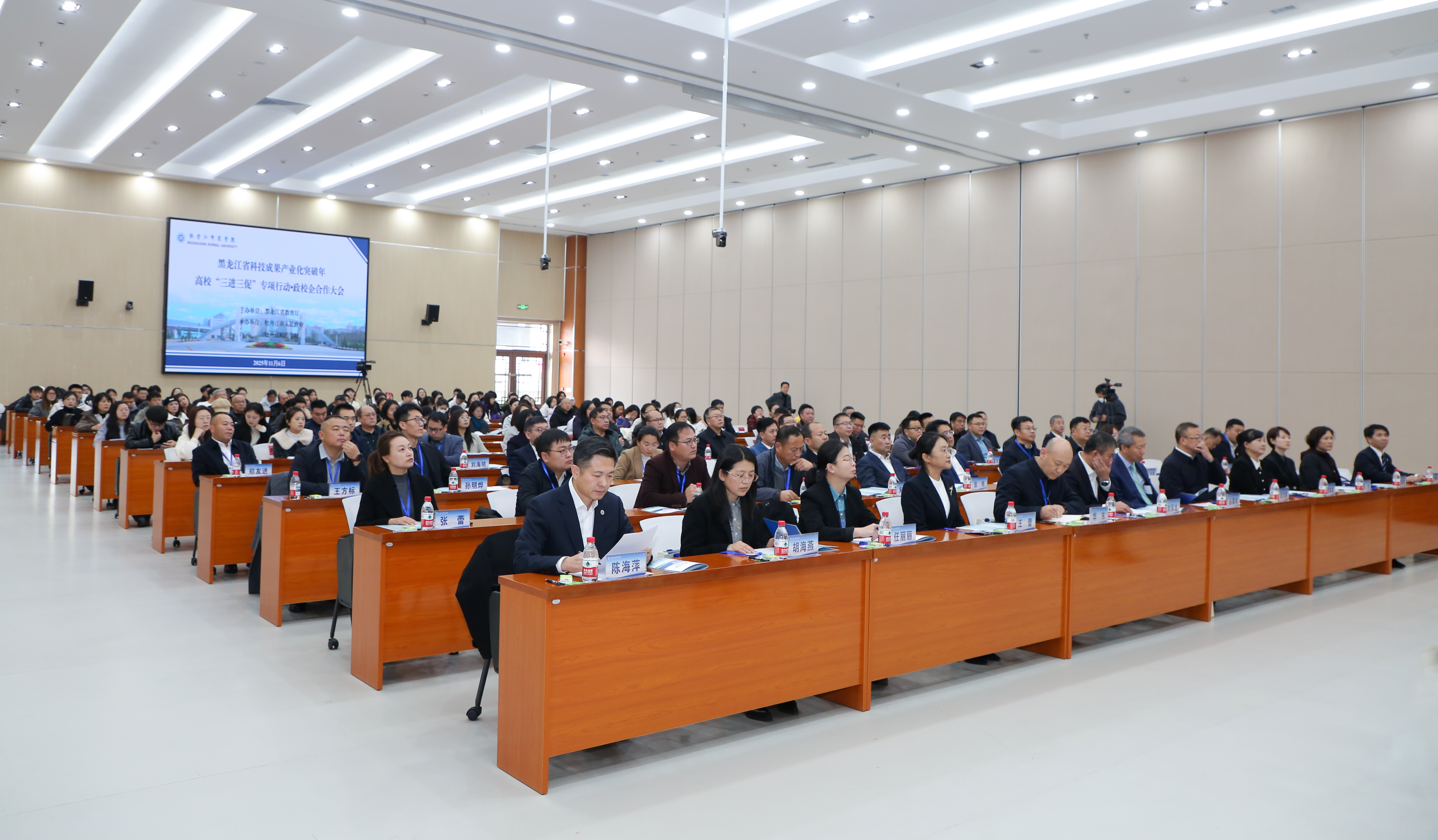 11月6日,“黑龙江省科技成果产业化突破年——高校‘三进三促’专项行动·政校企合作签约大会”在牡丹江师范学院举行。旨在落实习近平总书记关于加强校企科研合作、推动科技成果转化的重要指示精神,响应黑龙江省委省政府“科技成果转化突破年”行动部署,促进牡丹江市政府与牡丹江师范学院战略对接,助力区域发展。黑龙江省教育厅科学技术与信息化处处长华东、牡丹江市人民政府副市长刘军龙,牡丹江各区人民政府、教育局、科技局及部分企业负责人参会。恒丰集团党委副书记、工会主席张伟受恒丰集团党委副书记、副董事长、总经理梁德权委托与人力资源部部长闵庚宇代表恒丰纸业出席,张伟作为企业代表发言。