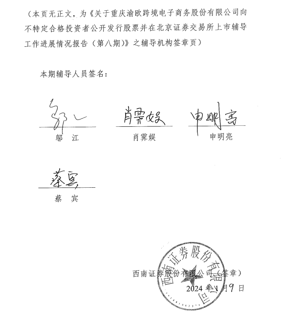 从时间节点来看,自2020年3月担任主办券商起,直到2023年10月出具辅导报告。西南证券签署的文件,在渝欧跨境实控人认定方面均与事实不符。