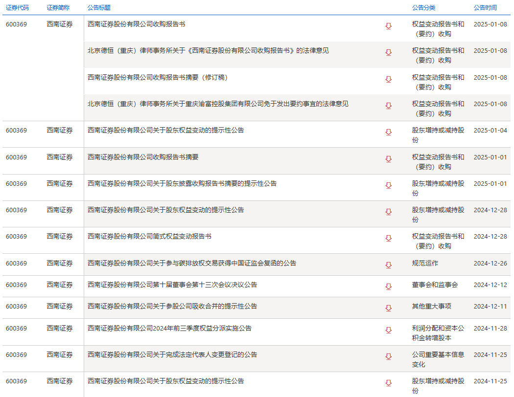 2024年12月27日晚间,西南证券公告宣布,渝富资本与渝富控股已签署《无偿划转协议》,渝富资本将所持西南证券29.51%股权无偿划转至渝富控股。同日,渝富资本发布《简式权益变动报告书》。