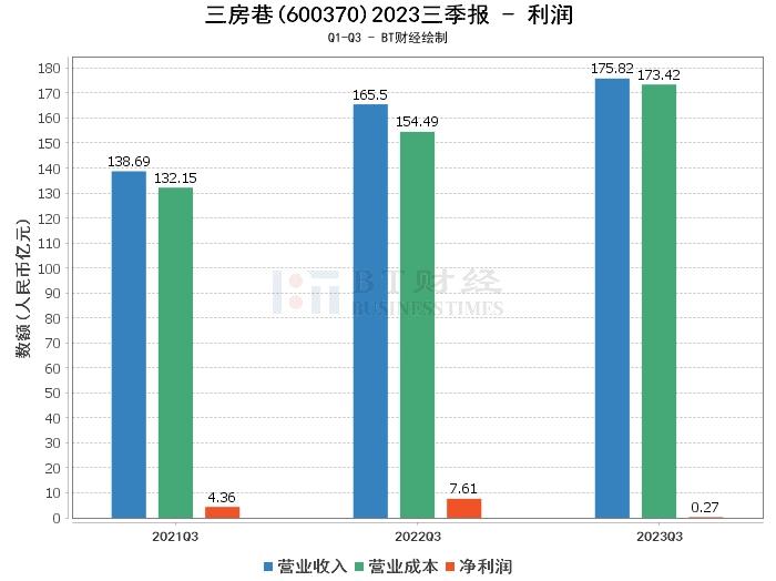 在利润方面,2023年三季度,三房巷的营业收入为175.82亿元,相比上年同期的165.5亿元有所增加。然而,营业利润为1336.5万元,大幅低于上年同期的9.17亿元。净利润为2687.86万元,大幅低于上年同期的7.61亿元。这主要是因为公司主要产品销售价格下降、毛利下降所致。