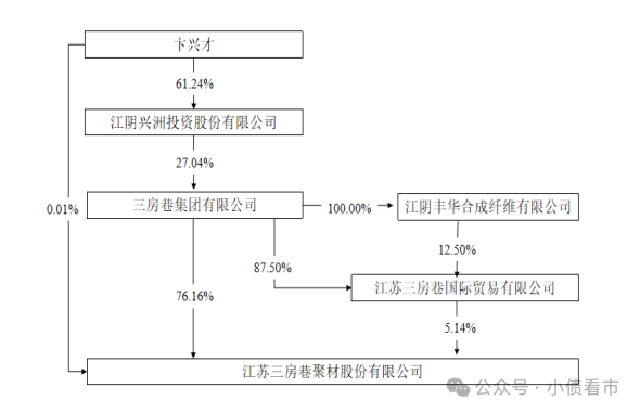 卞兴才通过三房巷集团和江苏三房巷国际贸易有限公司间接控制三房巷81.29%股份,并直接持有公司0.01%的股份,为公司实际控制人。