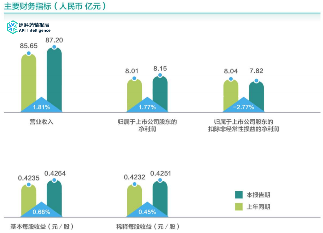 化学原料药及中间体下降3.2%,营收26.83亿元;中药制剂增长91.6%,达到9.86亿元。