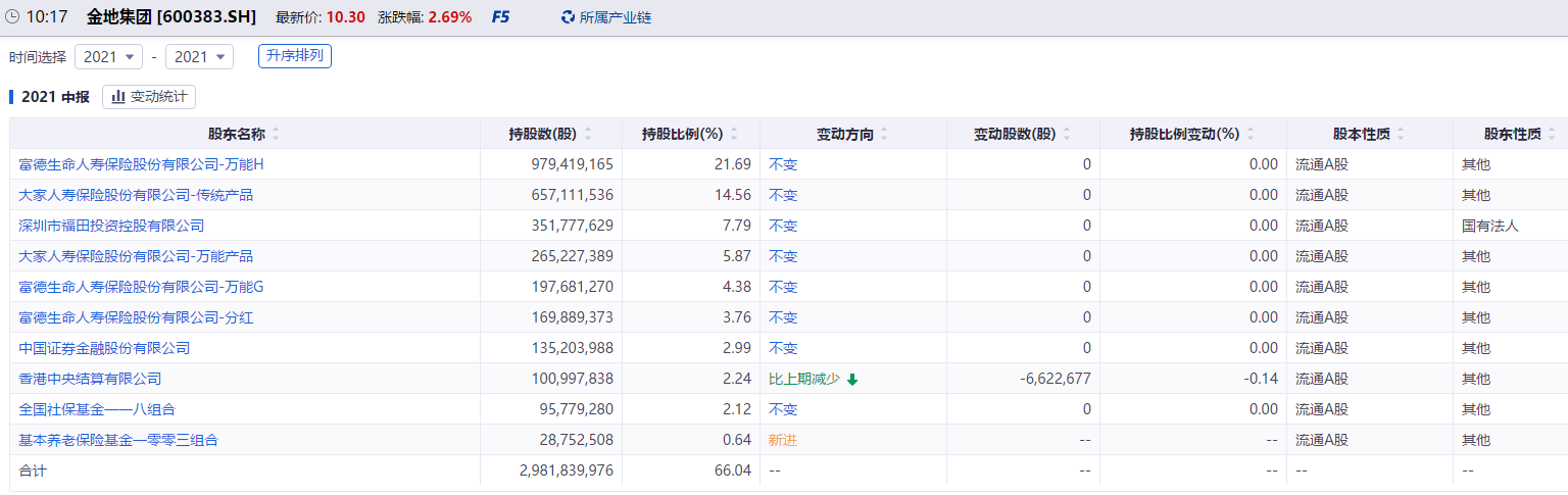 值得注意的是,在成为金地集团第二大股东的8年时间里,大家人寿从未减持过。