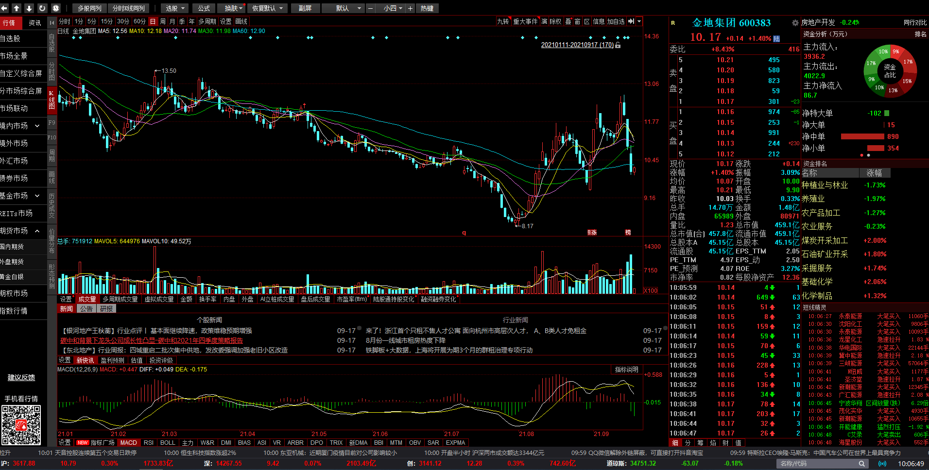 9月16日,金地集团(600383.SH)发布提示性公告称,持股5%以上股东减持公司股份超过1%。17日开盘,截至10:06分,金地集团报 10.17元/股,总市值为457.8亿元。而自9月14日起,金地集团已经连跌3天,总市值跌去了超百亿。