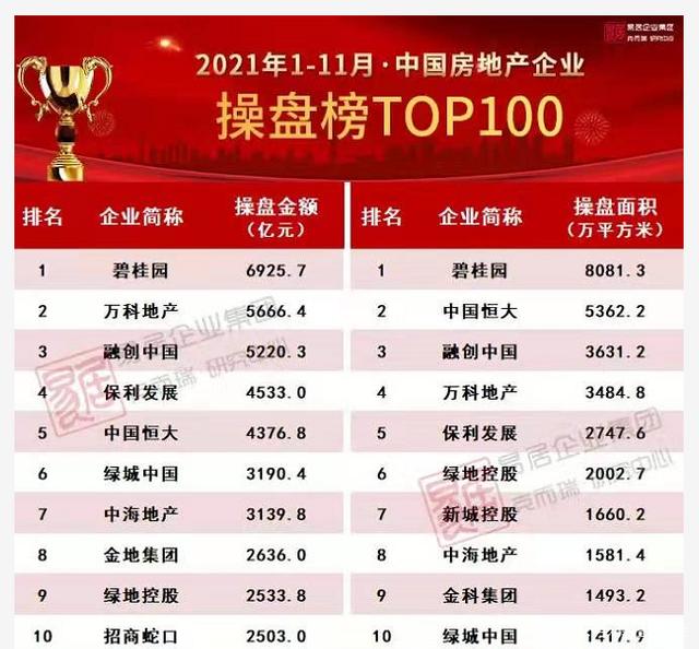 克而瑞研究中心数据显示,今年1-11月,房企操盘金额方面,金地集团以2636亿元排名第8位,操盘面积排名第14位。