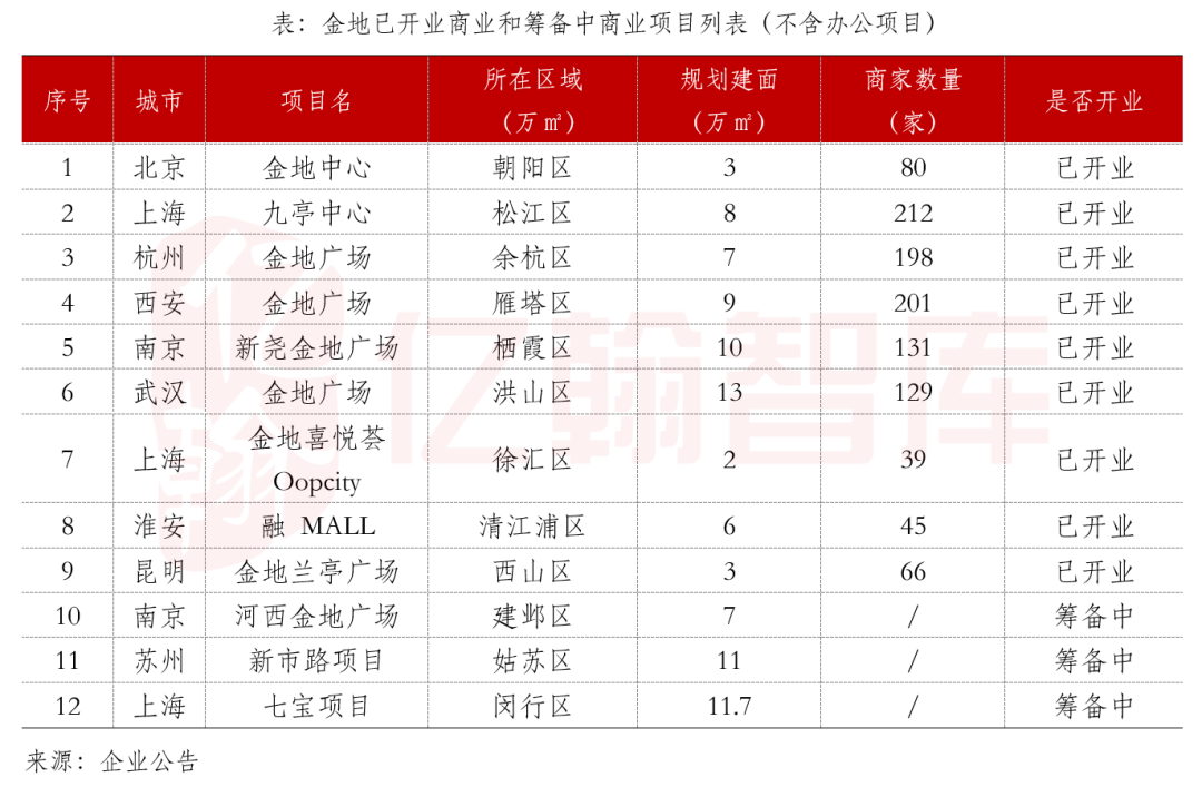 在商办业务方面,2013年金地集团收购香港上市公司星狮地产,后更名为金地商置,此后通过金地商置这一上市平台逐渐扩大商办业务领域的布局,并以“金地广场”和“金地中心”两大商业产品线为依托,在全国打造了一系列优质的商业项目。官网数据显示,截至2022年3月,金地商置在北京、上海、深圳、南京等地运营和在建商业项目达36个,物业形态覆盖超甲级写字楼、大型Mall、星级酒店等,总建筑面积逾336万平方米。年报显示2021年年底金地集团在营购物中心平均出租率维持 90%以上,进入成熟期写字楼年底平均出租率达到 95%以上,充分体现了其在商业运营上的杰出能力。