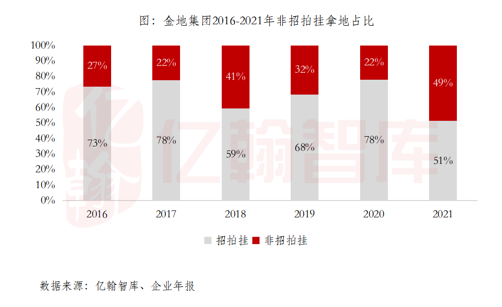 金地集团在土地获取上除了公开市场招拍挂以外,还通过旧城改造、合作、收购等一系列多元化的拓展方式,获取了丰富的土储,2021年,投资方式以投资额计,金地集团非招拍挂拿地占比约49%,同比去年提升173%,多元化获地能力显著提升。