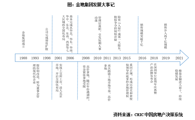2001-2006年,拓展期,开启全国化进程。2001年,金地集团实现了上海证券交易所上市,同年进入北京市场,开启了全国化布局;其后在2002年首入上海,2003年进军武汉和东莞,随后2004-2006年,公司在3年间进入7城,基本上完成了华北、华东、华南、华中、东北、东南和西部七大区域的全国化布局。