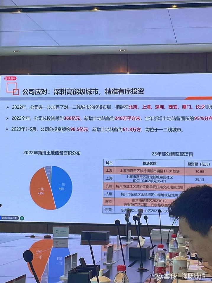 答:目前公司的土地储备有5182万平,对应的货值大概在一万亿元左右(按照1.8万一平的单价计算)。这一万亿中,已经有3000亿已经销售只是没结算。还剩下7000亿左右的销售规模。所以未来三年的销售资源不用着急。公司还是重点在现有项目方面,下半年有十几个新项目进入市场。
