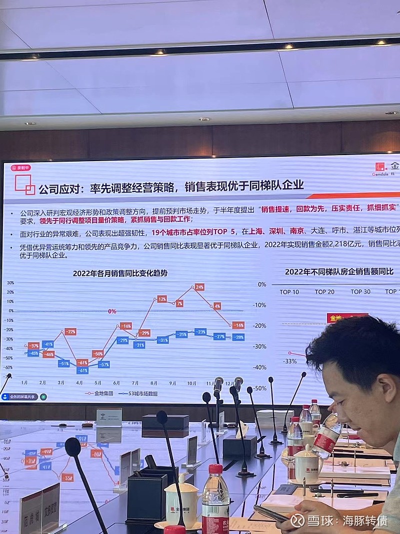 1、公司很早就预判到了地产行业的形势,并在2022年初就进行了主抓销售和控制支出两项策略,这也使得公司在2022年的整体销售方面做的比较好,全年的销售金额保持了上升,而支出方面的控制主要是包括土地投资和开工两个方面。