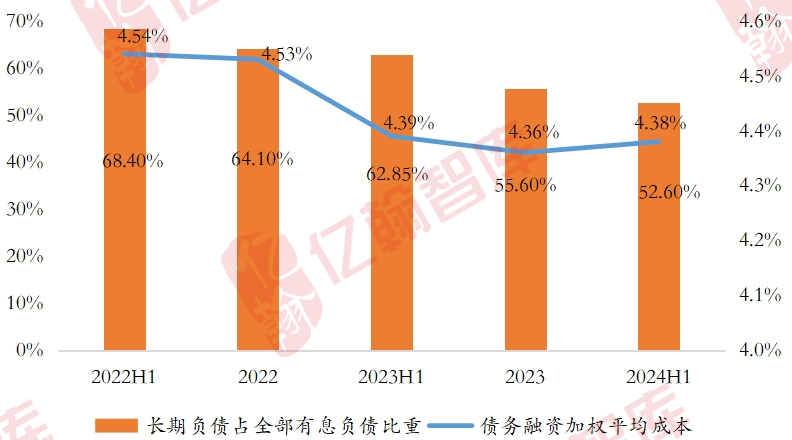 图表:长期债务占比及融资成本走势