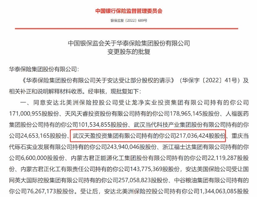 今年11月18日,中国银行保险监督管理委员会批复同意并公示了华泰保险股权向其他方转让的事项。