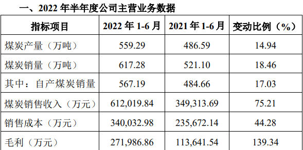 盘江股份7月11日公告,上半年煤炭销售收入为61.2亿元,同比上涨75.21%。