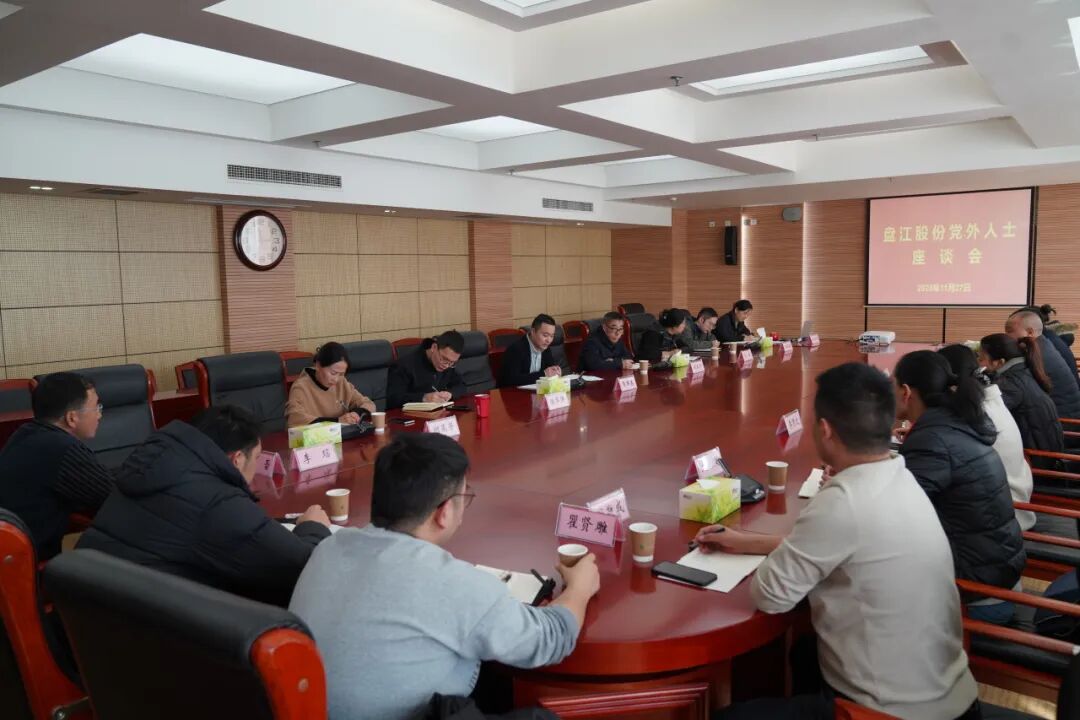 11月27日, 盘江股份 党委召开党外人士座谈会,围绕公司当前改革发展重点任务和长远发展规划,专题听取无党派人士和党外知识分子的意见建议,17名党外人士代表参加了座谈交流。