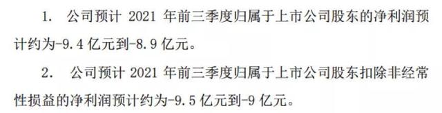 前三季度净利润最高预亏9.4亿元