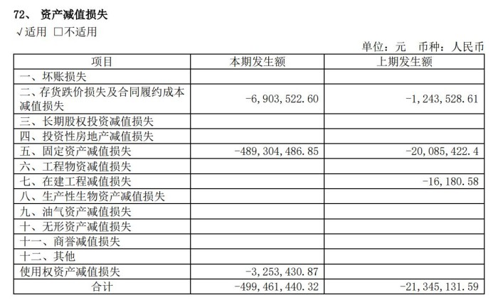 年报显示,2022年度*ST金山的固定资产减值损失高达4.89亿元,而上一年度固定资产减值损失为0.20亿元,同比增加了2336.12%。