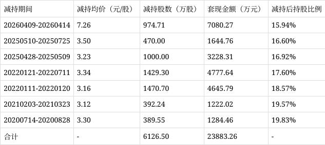 4月16日消息,华电辽能股东辽宁能源投资集团于2026年4月9日至2026年4月14日,通过竞价交易方式减持974.71万股,占总股本的0.66%,占辽宁能源投资集团持股总数的3.99%。套现金额约合7080.27万元。股份来源为参与非公开发行认购所得。截止目前,辽宁能源投资集团持股数量2.35亿股,占总股本比例为15.94%。