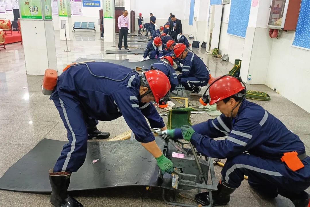 此次比武为期两天,以理论考试和技能实操相结合的方式进行。随着评委一声号令,15名井下钳工上演了一场皮带对接竞技的精彩对决,在激烈的切磋与竞争中,选手们个个争分夺秒,“大展拳脚”。参赛选手两两一组,分工明确,先用角尺和粉笔在皮带上画线,一人手持锋利的电工刀直线切割,一人配合扶稳皮带。这个步骤十分考验选手的基本功,如果没有切割成直线,皮带连接处将出现卡穿针现象,这样连接的皮带运行中会跑偏,严重影响安全生产。参赛选手们个个全神贯注,小心翼翼沿粉笔线移动刀片。经验丰富的选手先不进刀,用刀尖在粉笔线上,先破一道口子,更有利于皮带断开。进入到皮带打扣环节,选手们个个集中精力,精准打钉,将皮带牢牢扣死。经过激烈角逐,最终尚庄煤矿选手徐正钢摘得桂冠,尚庄煤矿李维保、曲江公司徐建明、尚庄煤矿李春华荣获二等奖,新洛公司张小七、曲江公司管圣根、安源煤矿林国枝、乐矿能源康世峰荣获三等奖。