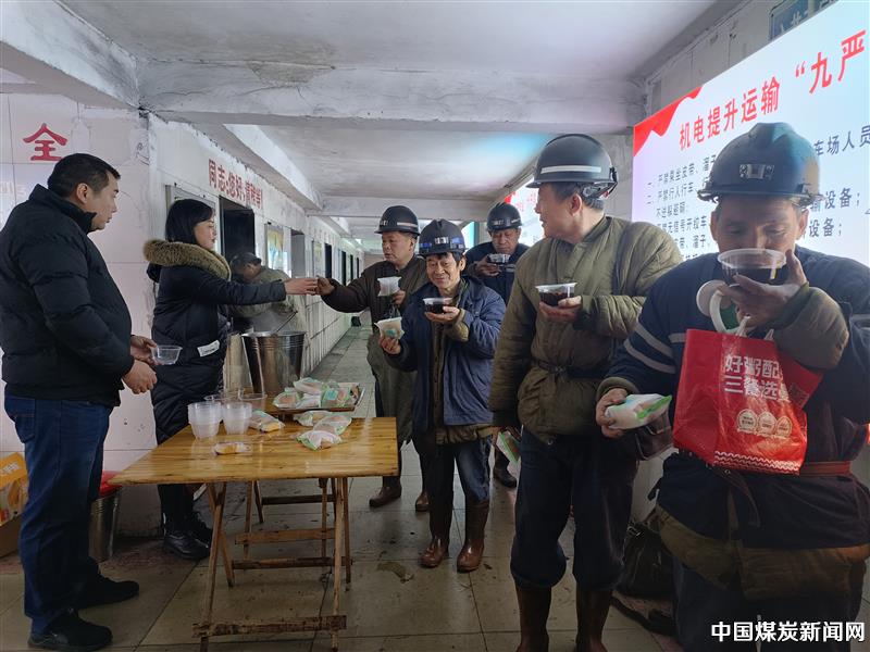 “矿工兄弟们,你们辛苦了,喝碗热姜汤,暖暖身体。”1月22日,正是大雪纷飞、寒风肆虐的天气,牵动了矿区协管员们的心,她们一大早就开始忙碌起来,煮姜汤。在中午,协管员们冒着大雪,抬着煮了四五个钟头的姜汤,赶到井口,热情地招呼着上下班的职工。