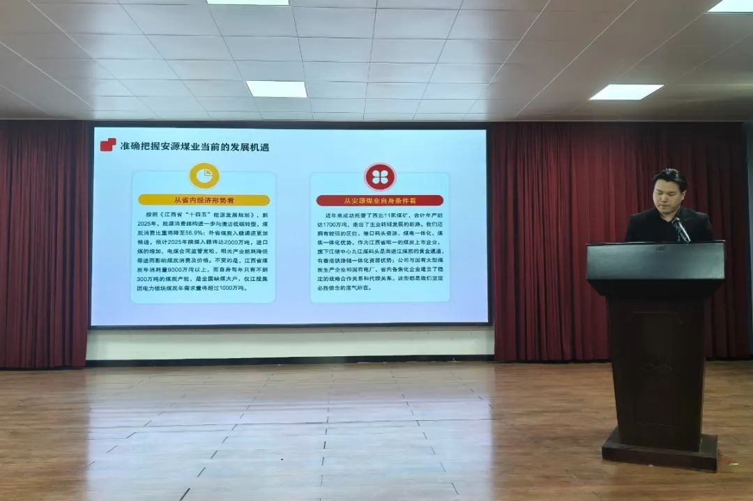 面对严峻的生产经营形势,为进一步统一思想、凝聚共识、提振信心,教育和引导广大干部职工聚焦“稳住省内一面,打开省外一片”,努力实现全年生产经营目标,推动安源煤业可持续发展。以“坚定信心,化危为机,奋力开创江西煤炭光明未来”为主题,3月18日-20日,安源煤业形势任务教育宣讲小分队先后走进安源煤矿、曲江公司、新洛公司、江储中心宣讲,将公司党委的声音贯穿到基层“最后一公里”。