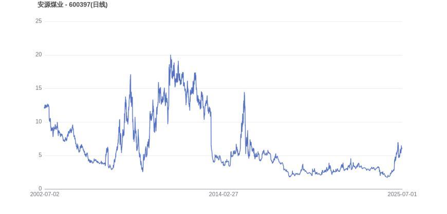 从上市首日至今,安源煤业的市值实现了1.29倍的增长。2015年6月9日,安源煤业的市值巅峰达到148.49亿元,股价也顺应升至15.0元。而至7月1日收盘,安源煤业的股价为6.16元,市值为60.98亿元,相比峰值时期市值减少87.51亿元,市值蒸发了58.93%。