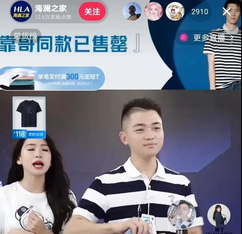 随即效果显现,直播间的靠哥同款Polo衬衫被一扫而空。