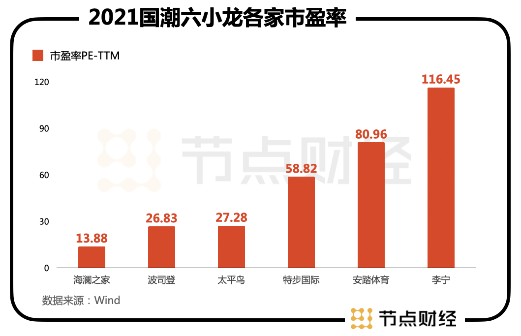 和“国潮六小龙”中的李宁、安踏、波司登、特步、太平鸟同场竞技,截至2021年7月19日收盘,海澜之家的市值约340亿元,属于市值第四位,仅次于太平鸟,距离2015年6月近900亿元的市值高点,已经蒸发超六成;TTM市盈率13.88,最便宜的那一个。