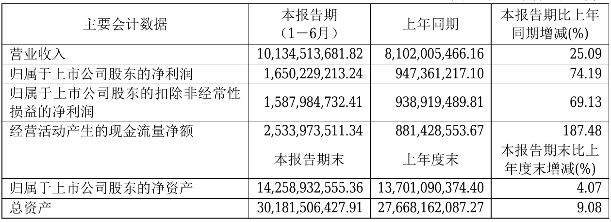 8月26日,海澜之家(600398)近日发布2021年半年度报告,报告期内营业收入10,134,513,681.82元,同比增加25.09%;净利1,650,229,213.24元,同比净利增加74.19%。