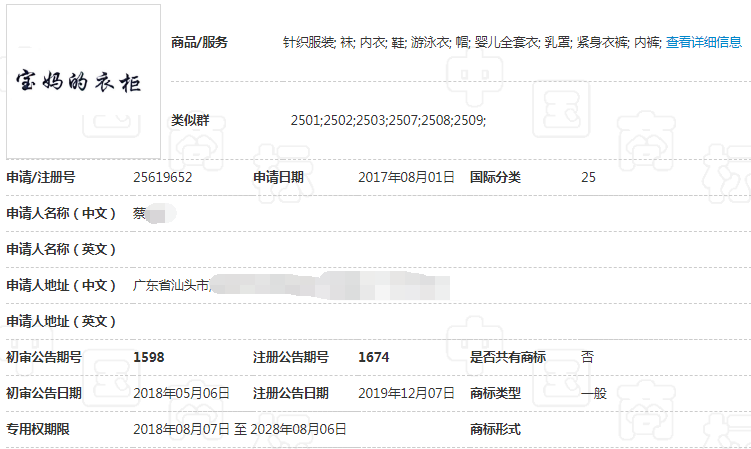 然而,2017年8月1日,蔡某某提交申请了“宝妈的衣柜”商标,也是这起案件的诉争商标,指定使用在“针织服装;鞋;袜;游泳衣等”等第25类商品上。2019年12月7日,该商标顺利通过了商标局的审核。