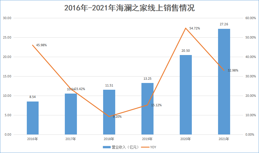 综合公司历年财报数据,海澜之家线上渠道201620172018201920202021年分别实现主营业务收入8.5410.5411.5113.2520.5027.26亿元,公司第二增长曲线显现。