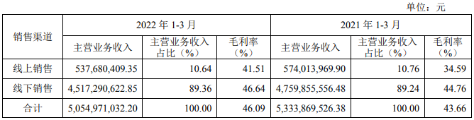 按渠道分,线上销售额下跌6.4%至5.37亿元,占总收入的10.64%,线下销售也下滑5%至45.17亿元。截至报告期末,海澜之家集团共拥有7671家门店,净增加19家。