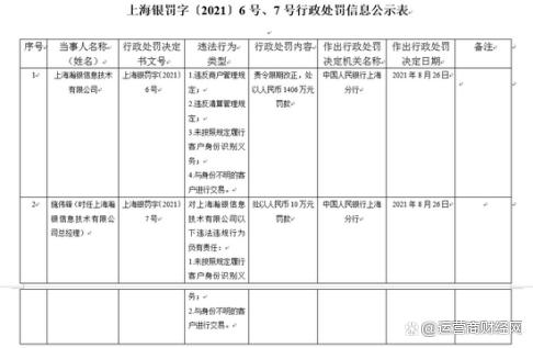 中国人民银行上海分行8月底公布的“上海银罚字〔2021〕6号”行政处罚信息公示表显示,上海瀚银信息技术有限公司存在违反商户管理规定;违反清算管理规定;未按照规定履行客户身份识别义务;与身份不明的客户进行交易等四项违法行为,中国人民银行上海分行对其责令限期改正,并处以人民币1406万元罚款。