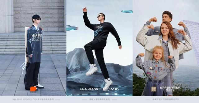 集团旗下新品牌也沿袭着文化联名的主线,以IP注塑品牌年轻文化力。潮流品牌黑鲸与潮玩IP星际熊联名推出胶囊服饰系列,“酷熊”形象给黑鲸风格设计提供了新灵感。HLAPLUS与“DEVOLUTION退化建筑”的IP联名将艺术、城市与生活的想象力推到极限,为品牌产品营造具象化穿着场景。集团旗下家居生活品牌海澜优选将IP文化投射到产品线各个角落,推出涵盖家居、生活、服饰等各方面的创意衍生品,致力于打造IP联名产品矩阵。与海绵宝宝、哆啦A梦的合作不仅将1P元素运用到日常服饰中,还涵盖到水杯、锅具等品质生活好物。