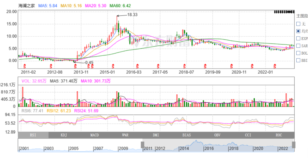 2014年,海澜集团成功上市,股价也一路上涨,成为A股市场中最大的服装企业。2015年海澜集团冲到了股价顶峰,市值一度达到900亿元。不过之后,海澜集团就迎来了低迷期。