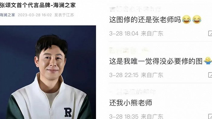 终于, 3月28日,海澜之家在官微宣布拿到了张颂文的“首个代言”。本以为可以人气销量双丰收,谁知代言海报却被网友骂上了热搜,“过度P图像蜡像”、“挪用路演图”、“吃相难看”等质疑愈演愈烈。