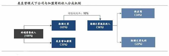 而在下游直营加盟的部分,加盟商只需提供店面的租金和装修费用就能“坐享其成”,海澜之家则负责店面形象、员工和货品的管理,商品完成销售后,加盟店与海澜之家按比例分成营业收入。