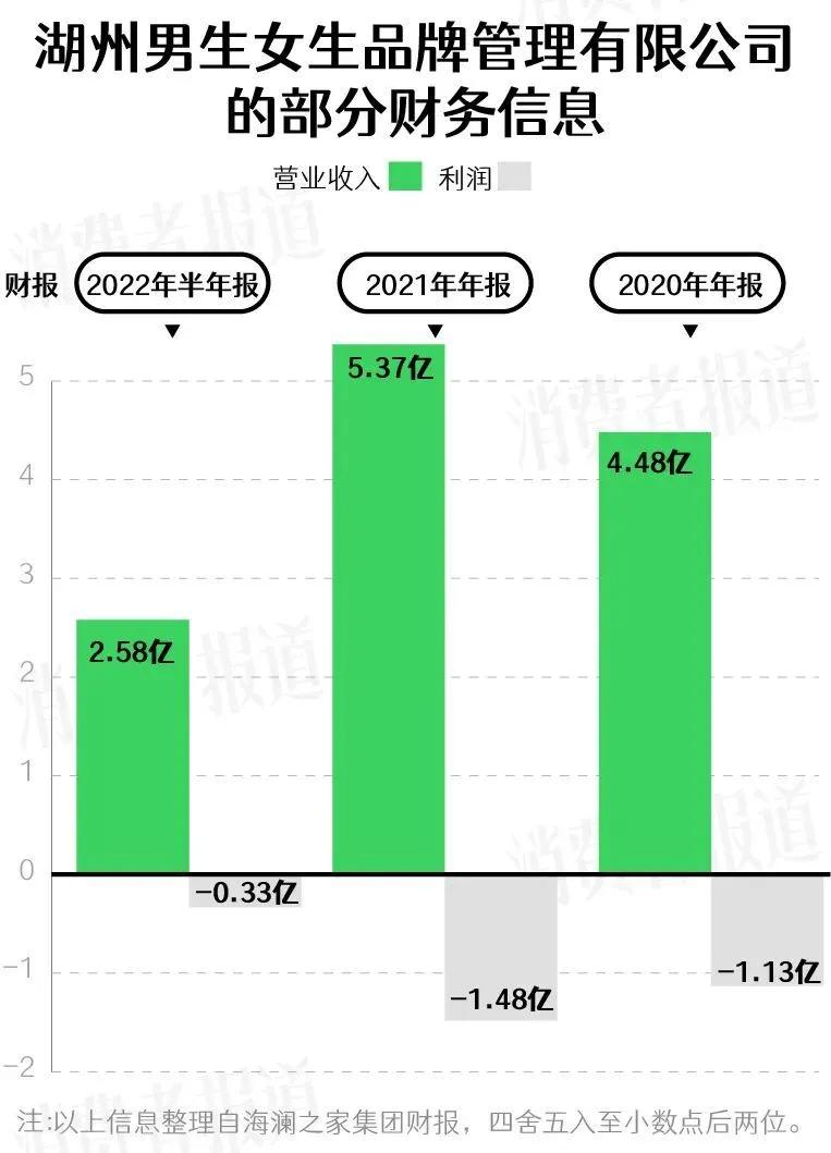 除了产品抽查情况欠佳外,这两家非全资子公司的经营状况也未如理想。三份海澜之家的财报显示,这两家公司在2020年、2021年、2022年上半年都是处于亏损状态。
