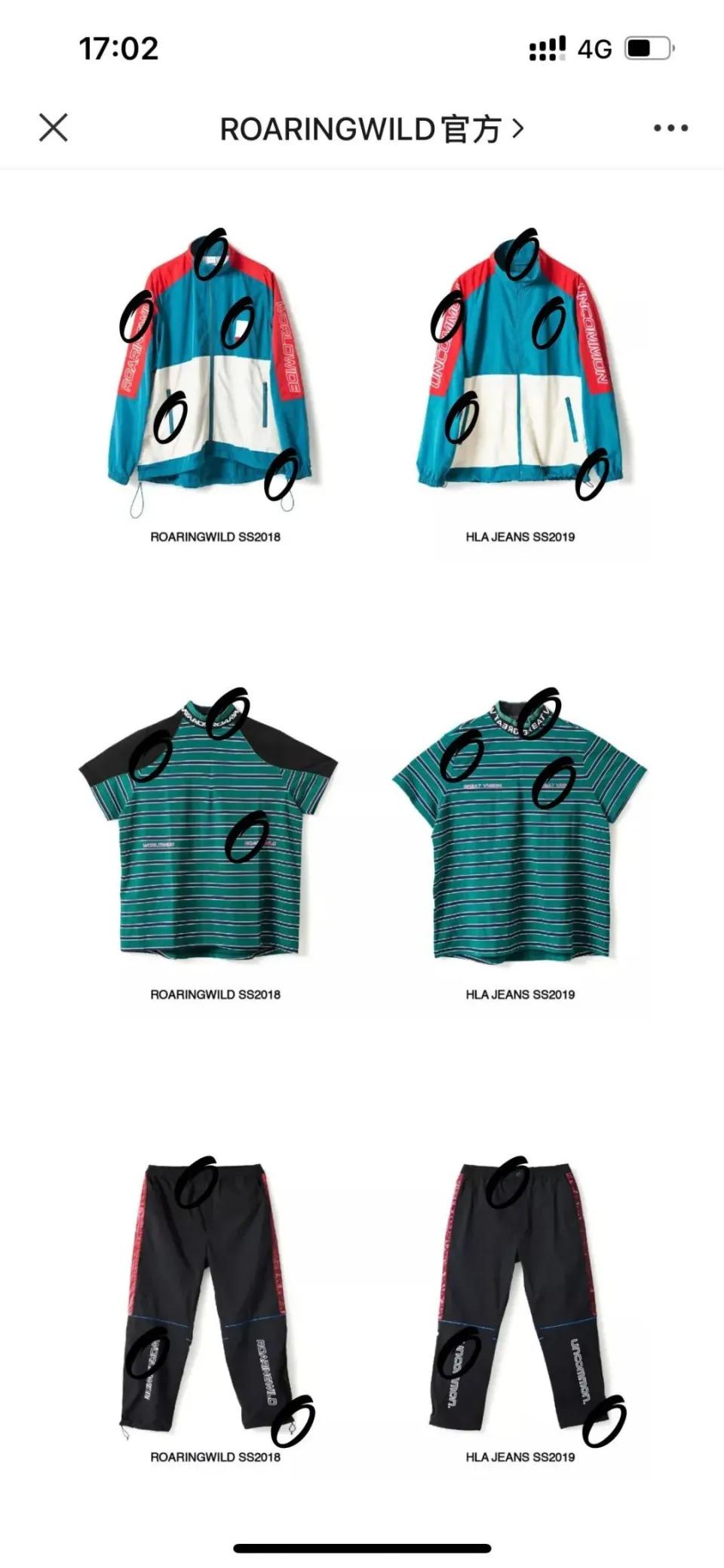 同年5月,海澜之家旗下潮牌黑鲸(HLAJEANS)被另一个潮牌ROARINGWILD发文讽刺抄袭,《抄袭是门艺术,海澜之家使人嫉妒》一文中列出了黑鲸2019新款抄袭ROARINGWILD2018年春夏旧款的证据图。极具讽刺的是,ROARINGWILD在文中表示一般抄袭我们需要去对比寻找究竟“抄了哪”,这次希望你们一起来帮忙看看我们选出的部分款式里究竟“哪没抄”。