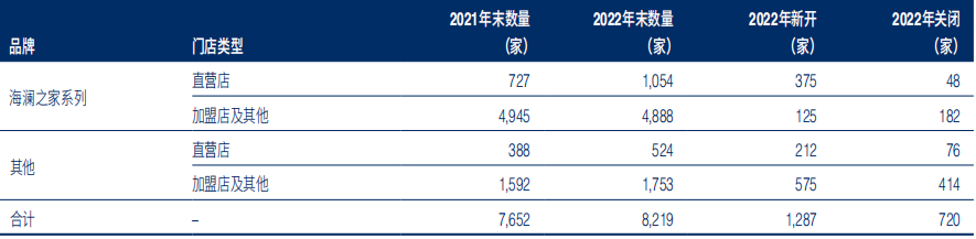 以海澜之家系列为例,直营门店在2022年新开375家,逆势上扬,但在加盟店及其他上,2022年新开125家门店,关闭182家门店,且这种趋势并非2022年独有,在2021年海澜之家的财报中也有所体现。