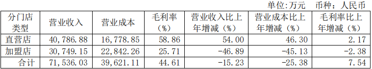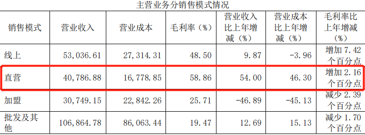 以红豆为例,在整体的营收中,直营业务保持着较高的毛利率,同时,来自于直营店的营业收入也远高于加盟门店。