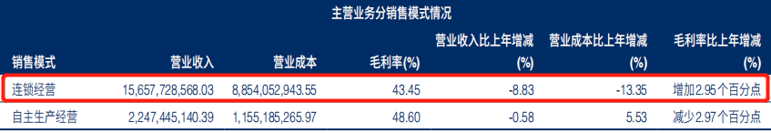 而在海澜之家的财报中,自主生产经营虽贡献了较高毛利率,但在总体营收中的占比则较低,从数字来看,在全年185.62亿元的总营收中,营收大头来自于连锁经营。