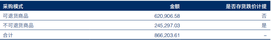 在海澜之家2022年年报中,可以看到海澜之家与供应商之间的采购模式分为可退货和不可退货两种模式,在可退货模式下,海澜之家可以按照成本原价退还给供应商,不需要承担滞销风险,当然,在可退货模式下,海澜之家也给予供应商高于行业平均的毛利作为补偿,而对于不可退货商品,海澜之家则根据库龄进行存货跌价计提。