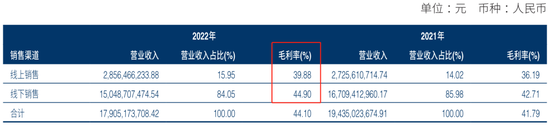 当然,后知后觉的代价也很明显。上文提到,2015-2019年,海澜之家线上渠道毛利率均高于线下渠道10个百分点以上,2016、2017年甚至在20%上下。但是到了2020年,线上的领先优势已经仅剩0.3个百分点,2021和2022年甚至已经稳稳落后线下5个百分点以上。
