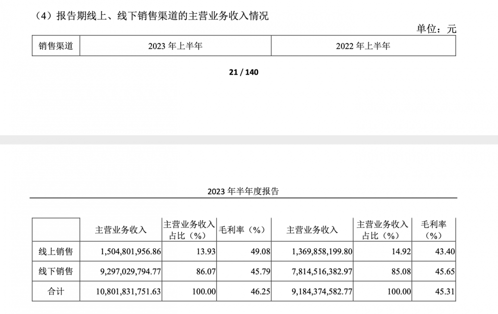 在此基础上,2023年上半年,公司线上销售收入15.05亿元,同比增长9.85%。