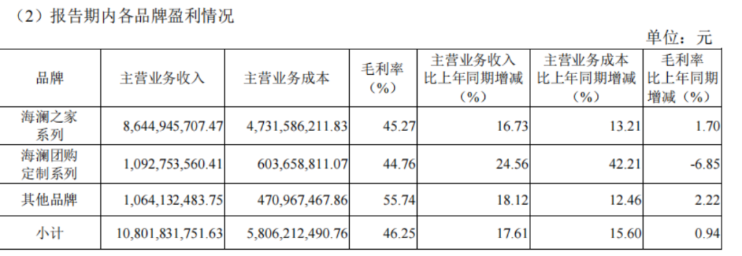 凭借母公司强大的品牌运营能力,除主品牌海澜之家外,公司针对童装、女装等其他服装细分领域及生活家居领域,推出海澜团购定制、海澜优选、英氏YeeHoO、OVV、黑鲸、等各具风格的品牌,并成为HEAD SPORT GMBH服饰品类在中国大陆及港澳台地区的独家授权商。公司在各个细分领域发挥集团化的产业运营优势,创造展现生活方式的载体,满足人们对于服装穿着和居家生活的不同需求和个性表达。报告期内,海澜之家系列实现营收86.45亿元,同比增长16.73%,其他品牌实现营业收入10.64亿元,同比增长18.12%。