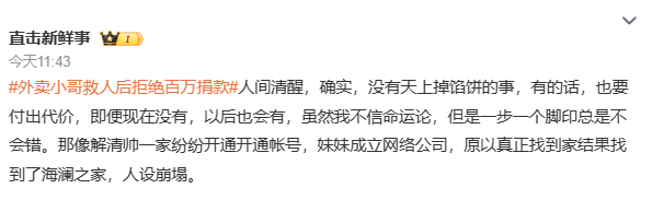 这时网友们才意识到原来解清帅所说的“靠自己的努力”就是“直播带货”。毕竟大众想象中的“努力”“奋斗”,是解清帅通过学习或工作证明自己,而不是直接把基于同情和敬佩的流量转化成“销量”。